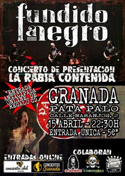 Las fechas de presentación del nuevo LP de Fundido a Negro arrancan en Granada este próximo 15 de abril a las 22:30 en Pata Palo y que seguirá por ciudades como Madrid, Sevilla, Málaga o Almería. Aprovecha la distribución digital de entradas para llevarte como obsequio el último LP de la banda en formato CD "La Rabia Contenida"
