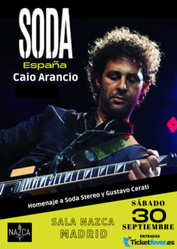 CAIO ARANCIO es SODA Este show es un repaso por todas las épocas del procer del rock hispanoparlante GUSTAVO CERATI, de la mano del cantante CAIO ARANCIO y su banda de notables músicos de la escena del Rock Argentino. Caio y su banda con su Tributo a Soda Stereo en Madrid en Septiembre de 2023, CAIO, reconocido vocalista con una voz extremadamente similar a la del ícono del rock y su banda logran en un recorrido sonoro y emocional, llevar al espectador de paseo por la vida y obra de SODA STEREO.