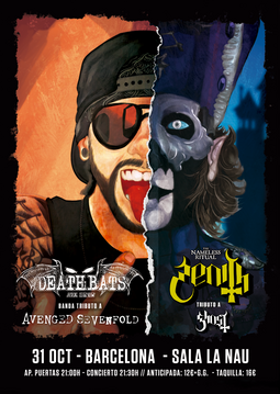 AVENGED SEVENFOLD es una de las bandas de metal de mayor éxito de la historia. Desde su aparición a principios de siglo, no ha hecho que cosechar éxitos y grandes temas que a día de hoy son historia de la música. Con unos solos de guitarra abismales, un registro de voz increíble, unos ritmos de batería alocados, hacen que sea una autentica locura escucharlos. Deathbats nace con la idea de replicar ese sonido sobre los escenarios, con solos duales de guitarra en escena y un show que no para de principio a fin.