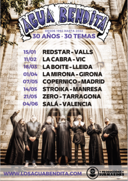 CAS: Coincidiendo con el 30 aniversario de la creación del mítico grupo Barcelonés de Ska/Punk/Reggae Agua Bendita , la banda vuelve a los escenarios de la mano de Moussa Castro, voz, bajo y compositor de gran parte de los temas de sus 4 álbumes oficiales, publicados por la discográfica Tralla Record entre 1993 y 1998.En su directo, nos ofrece un repertorio basado prácticamente en las dos maquetas debut del grupo, tituladas Amén y Grita Liberta (93/94), con un sonido fresco e inconfundible.