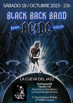 Black Back Band, tributo #1 de AC/DC en España según la crítica, vuelve a su cita anual en La Cueva del Jazz de Zamora para descargar todo lo mejor del repertorio de la banda Australiana.