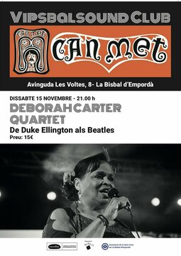 Amb residència europea des de fa més d'una dècada, la cantant Deborah Carter (Estats Units, 1956)és una de les vocalistes més valorades de l'escena jazzística actual. Les seves propostes s'han caracteritzat tant per reivindicar els grans autors del gènere com Duke Ellington com per la capacitat de portar al jazz repertoris tant populars com les cançons de The Beatles. Ha compaginat l'escenari amb les aules on destaca com una de les millors transmissores de les tècnies de l'art vocal que ella ha aprés directament de mestres com el gran Al Jarreau. L'oportunitat de veure-la en directe amb el seu quartet europeu és una d'aquelles ocasions que convé aprofitar per deixar-se portar per la màgia del cant en el jazz. Tot un luxe per aquesta nova sessió del Vipsbalsound Club a Ca'n Met.
