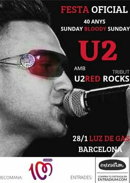 FESTA OFICIAL U2 amb la banda tribut U2RED ROCKS. Ari, la seva baixista va ser convidada pels propis U2 al Palau Sant Jordi a tocar amb ells.