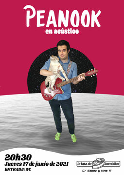 Peanook = indie folk + soft rock + melancolía + Eels + Beatles. Este es el proyecto musical de Pablo Arnal, zaragozano de 22 años que acaba de recibir su primera nominación a los Premios de la Música Aragonesa mientras sigue sin saber cómo se plancha una camiseta. Tras muchos intentos frustrados por cierta pandemia el jueves 17 a las 20h30 estará al fin en La Lata de Bombillas con un formato acústico renovado mucho más intimista y cercano, algo que nos va pidiendo el cuerpo tras tanta tormenta de silencio y de distancias. Un repaso de sus mejores canciones, nuevas versiones y un montón de temas frescos que sonarán por primera vez. Entrada: 5€, gatete del cartel no incluido (aunque ya nos gustaría).
