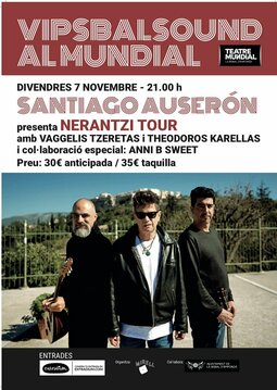 Santiago Auserón inicia un nou projecte musical. Després de la seva etapa d'acostament a les fronteres del rock i del son, ara ha viatjat a Grècia per adaptar al castellà un repertori selecte, en col·laboració amb Theodoros Karellas, cantant i guitarrista d’Atenes i el buzukista Vaggelis Tzeretas, originari l’illa de Samos. Amb ells ha enregistrat a Atenes versions de clàssics grecs del segle XX, exemples destacats del rebétiko popular y de la balada mediterrània, així com un farcell de cançons creades per a l’ocasió. L'àlbum «NERANTZI» es publicarà a la tardor, amb convidats grecs d'alt nivell i la cantant espanyola Anni B. Sweet. El seu concert al Teatre mundial de La Bisbal d'Empordà és una de les perles del cicle Vipsbalsound i suposa el primer concert de la gira on presentarà el seu nou projecte a tot l'Estat espanyol en companyia exclusiva de Theodoros i Vaggelis.