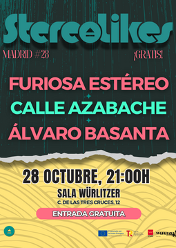 El 28 de octubre a las 21:00h la Sala Wurlitzer será el punto de encuentro para descubrir nuevo talento y conectar con su música. Para esta edición nos acompañan Furiosa Estéreo, Calle Azabache y Álvaro Basanta, ¡perfecto para los que necesitan un soplo de aire fresco en sus playlists!
