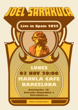 Joel Sarakula y su banda va a volver a Marula Cafe, Barcelona de nuevo esta Noviembre con su musica de groove y soft-rock. Joel Sarakula un artista de Australia y el Reino Unido que escribe, produce y canta, mirando a un mundo contemporáneo a través de gafas de época vintage. Su música se nutre de una rica paleta musical y visual inspirada en los años setenta, con influencias del soft-rock, el funk y la música disco, que filtra para adaptarla a nuestros tiempos más oscuros sin perder la esperanza.