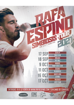 Ven a vivir una noche mágica, en la que Rafa Espino dará un show ante sus seguidores valencianos. Presentará su último disco, Simbiosis, así como un repaso a su extensa carrera, en un concierto que promete ser inolvidable, de en torno a 2 horas de duración, y acompañado por Sile a los coros y Frenetik Beats a los platos.