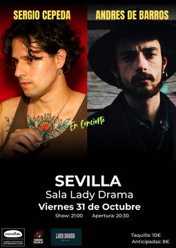 El próximo 31 de octubre te esperamos en Sala Lady Drama de Sevilla para una noche única de música en directo. Sergio Cepeda y Andrés de Barros compartirán sus propios temas, en un concierto íntimo y potente que promete emoción, frescura y muy buen rollo. Una cita imperdible para descubrir y disfrutar de nuevas propuestas musicales en un ambiente cercano y especial. ¡No te lo pierdas, ven a vivirlo con nosotros!