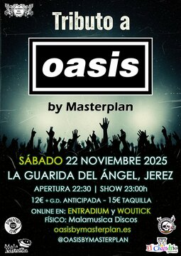 La magia del britpop llega a Jerez con Masterplan, una de las bandas tributo más destacadas a Oasis en España. Con una puesta en escena fiel y una energía arrolladora, revivirás himnos generacionales como “Wonderwall”, “Don’t Look Back in Anger” o “Champagne Supernova”, junto a muchas más joyas de los hermanos Gallagher.