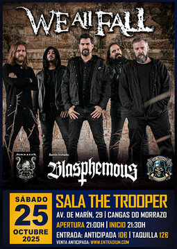 We All Fall vuelve a Galicia después de su reciente participación en el Resurrection Fest. Esta vez lo hacen a su segunda casa: Cangas Do Morrazo. Sin duda uno de los lugares preferidos de la banda madrileña donde siempre han encontrado una calurosa acogida. Y en donde sus conciertos se han convertido en una absoluta locura! Presentarán canciones de su inminente nuevo disco ¨Tales From A Dying Sun´ junto con clásicos de la banda y muchas más sorpresas.