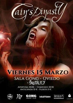 La banda de heavy vampiric metal alicantina 'Cain's Dinasty' aterriza en esta ocasión y por primera vez en la ciudad asturiana de Oviedo en la mítica Sala Gong Galaxy Club acompañada por la banda de thrash metal BrutalFly, originaria de Asturias y que lleva dando caña desde 2012.