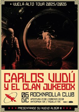 Carlos Vudú y el Clan Jukebox presentan en directo su nuevo disco “III” dentro del Vuela Alto Tour, una gira que muestra la nueva etapa de la banda: más potente, más contemporánea y más libre que nunca. Con un sonido que bebe del rock alternativo, el stoner melódico y la canción de autor más eléctrica, “III” es un disco enérgico y emocional, donde las guitarras tensas y los estribillos afilados conviven con letras que miran de frente a lo humano, sin artificios.