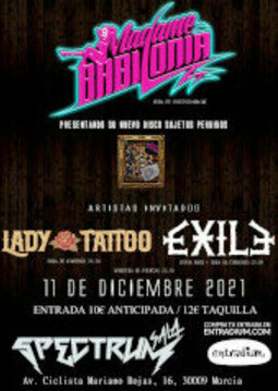 PRESENTACION DEL SEGUNDO DISCO DE MADAME BABILONIA "SUJETOS PERDIDOS" JUNTO A DOS BANDAS DE MURCIA, LADY TATTOO Y EXILE " COVERS", SERA UNA GRAN NOCHE DE ROCK AND ROLL!!